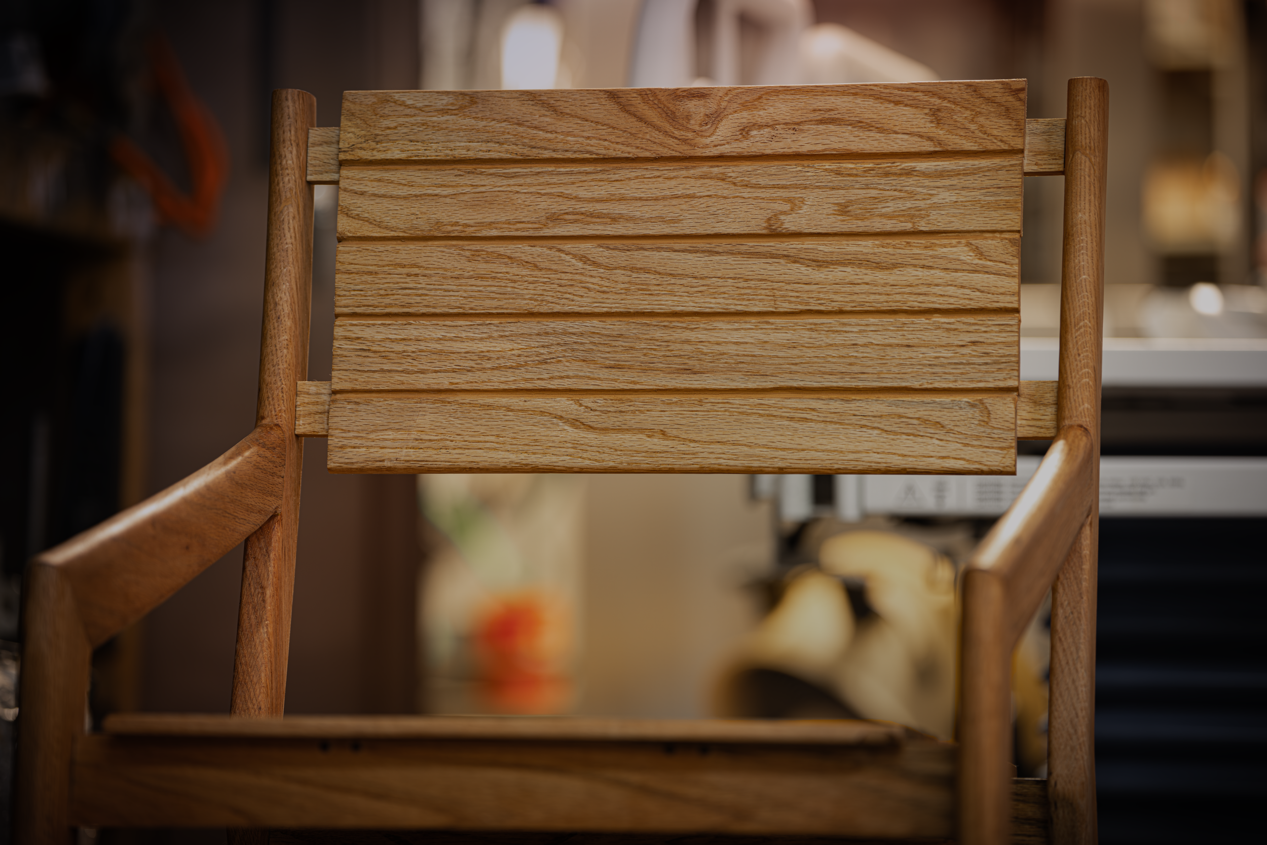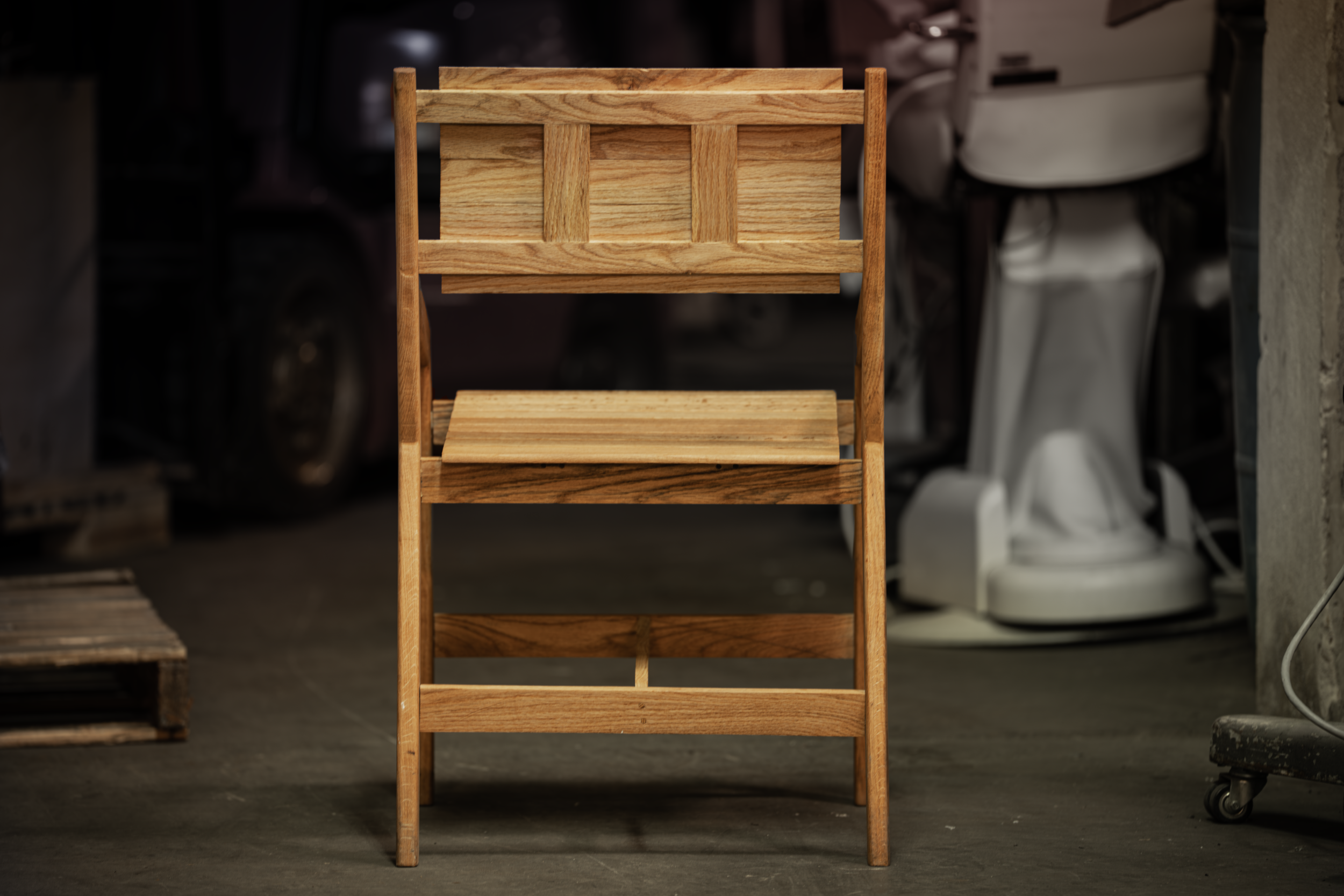nara 楢 derives from the Japanese word for oak, a tree symbolizing strength, endurance, and natural beauty. Inspired by these qualities, I designed this dining chair using measurements from my own body to define its proportions and comfort. Crafted from red oak, the chair embodies warmth, balance, and an elegant resilience that connects material, form, and the human experience.