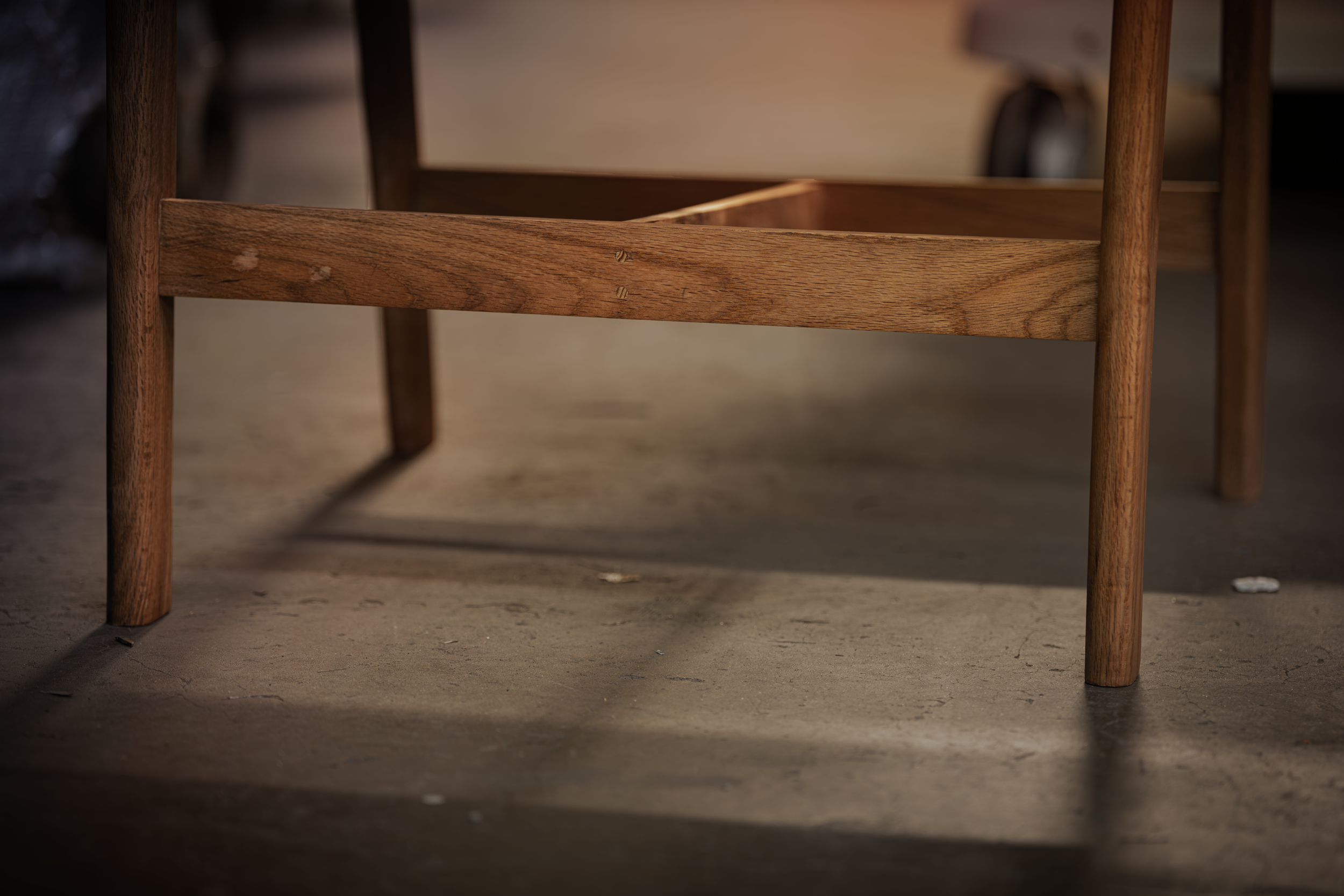 The backrest proved to be a challenging component to design and construct. The main difficulty lay in maintaining a thin profile while ensuring enough structural strength for everyday use. For its primary joinery, the back brace utilizes D8-sized domino connectors, while the interior joints are reinforced with dowel joints to provide additional stability and support.